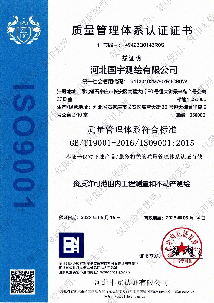 質(zhì)量管理體系認(rèn)證證書